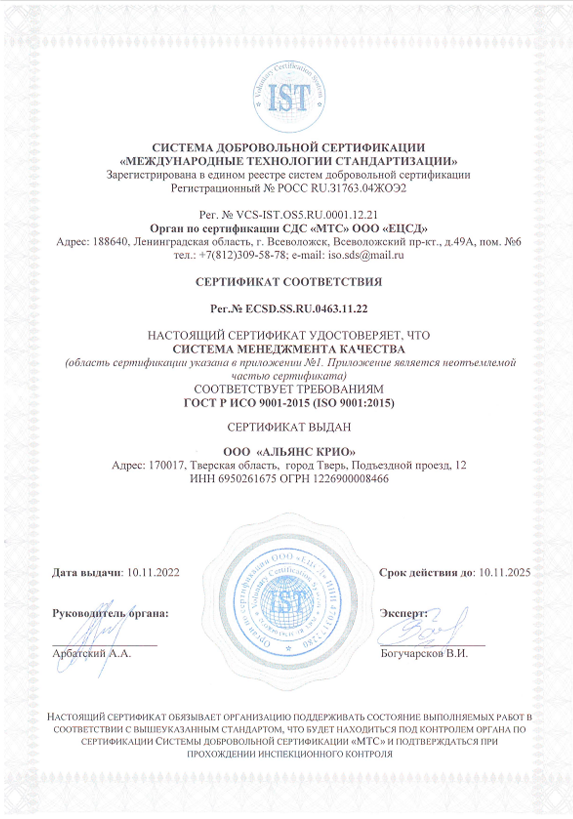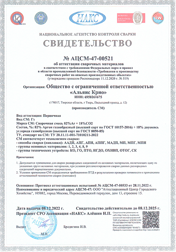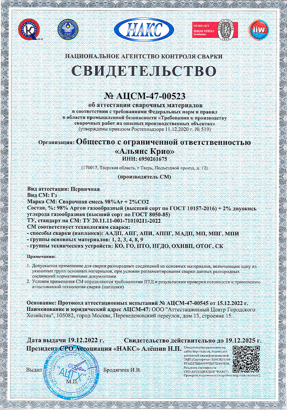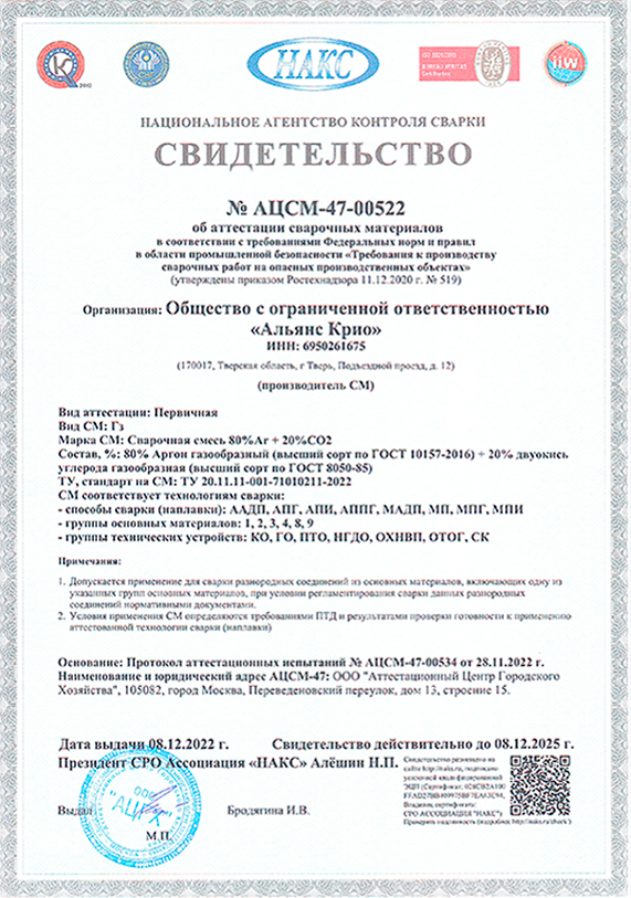 ►Есть своя аттестованная лаборатория ООО "Альянс Крио", где проходят контроль качества технические газы